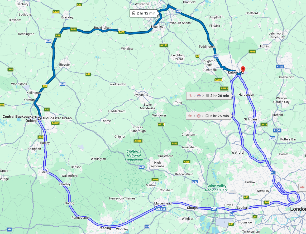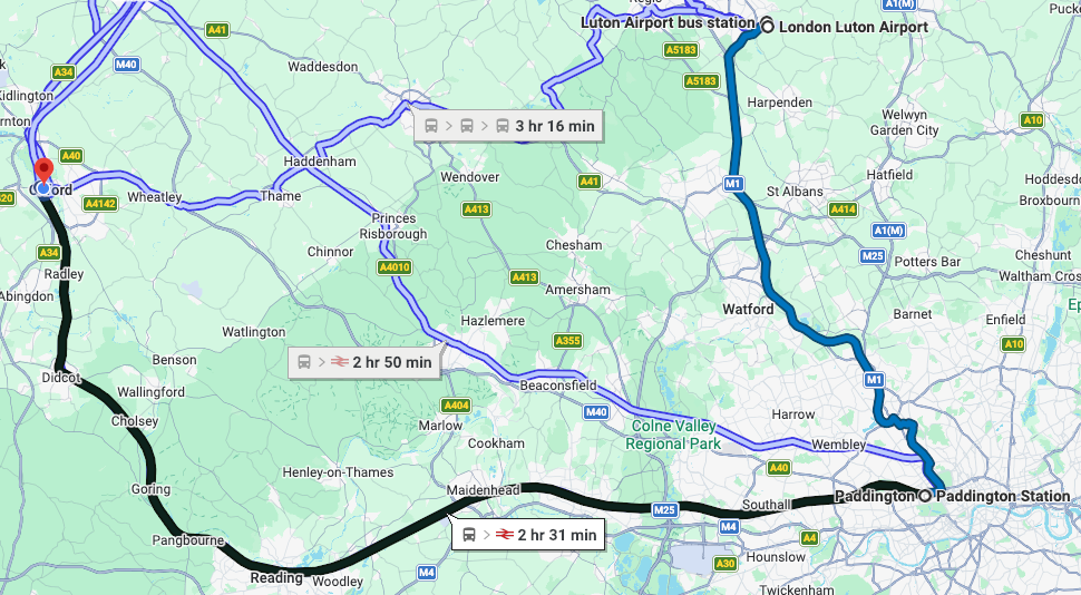 Please note that this list is not exhaustive and based on experience and research. Transport options might differ depending on the day, time, or due to unforeseeable circumstances. Always check your route to Oxford before flying.