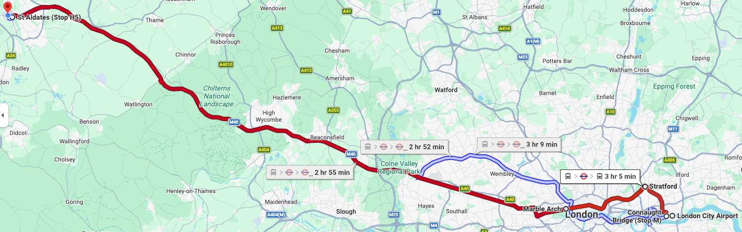 Example 1: London Heathrow - Central Backpackers by bus (Google Maps)